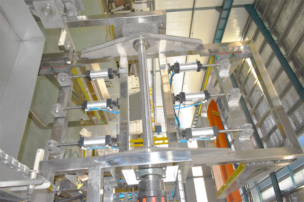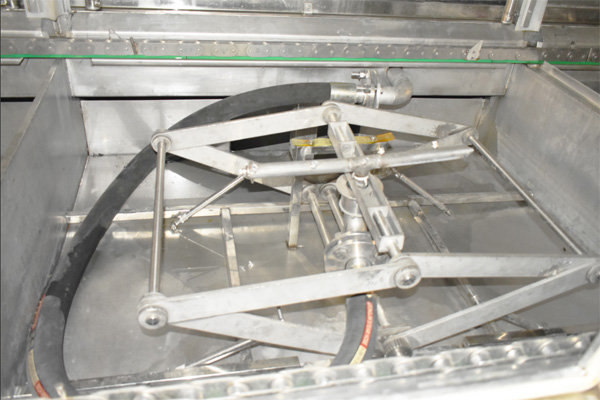 01)通過設(shè)備上面的觸摸屏設(shè)置設(shè)備運行的各項參數(shù),待清洗料桶通過 AGV 小車輸送到緩存支架上,由夾持裝置將工件加緊經(jīng)翻轉(zhuǎn)電機將工件旋轉(zhuǎn) 180 度,使料桶口向下置于上料工位。→(02)設(shè)備運行裝置自動將料桶運行到噴淋粗洗工位,高壓噴淋粗洗工位設(shè)有桶內(nèi)壁旋轉(zhuǎn)噴頭,對桶內(nèi)壁進行清洗。桶體外側(cè)設(shè)置頂部及側(cè)面噴頭對料桶外壁進行清洗。工位設(shè)置探測器,工件在運動時噴淋工位停止工作。→(03)料桶經(jīng)過噴淋粗洗后設(shè)備運行裝置自動將料桶運行到噴淋精洗工位,高壓噴淋精洗工位設(shè)有桶內(nèi)壁旋轉(zhuǎn)噴頭,對桶內(nèi)壁進行清洗。桶體外側(cè)設(shè)置頂部及側(cè)面噴頭對料桶外壁進行清洗。工位設(shè)置探測器,工件在運動時噴淋工位停止工作。→(04)噴淋精洗完畢后,料桶運行到高壓風(fēng)切吹干工位,熱風(fēng)吹干采用高壓風(fēng)機和熱風(fēng)發(fā)生器,可以對工件進行快速干燥。→(05)工件經(jīng)熱風(fēng)吹干完畢后運行至下料翻轉(zhuǎn)工位。由夾持裝置將工件加緊進行翻轉(zhuǎn),工件翻轉(zhuǎn)180度以后放置到緩存支架上由AGV小車帶動料桶進入干凈桶暫存區(qū)。